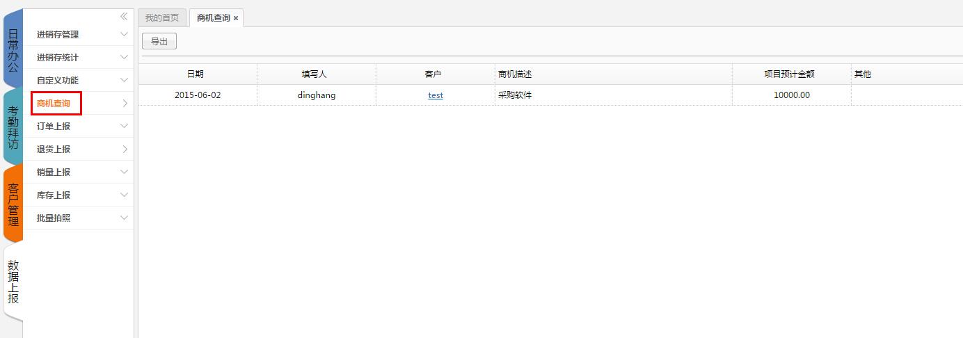 方式一:在web端菜单栏中点击【商机查询】按钮,可以查看自己及下属上报的商机详情。