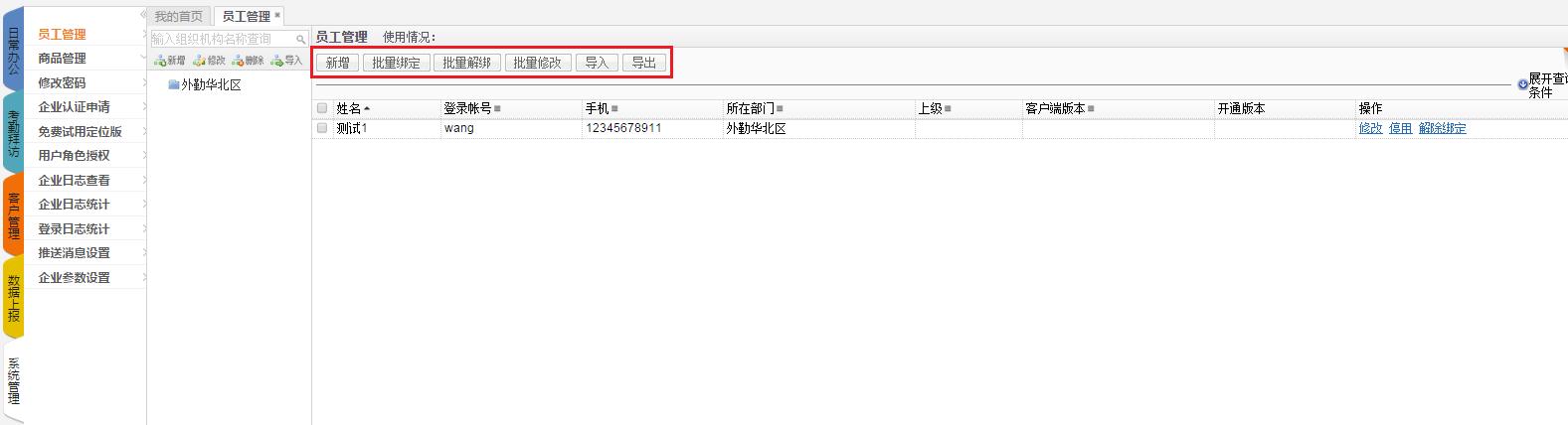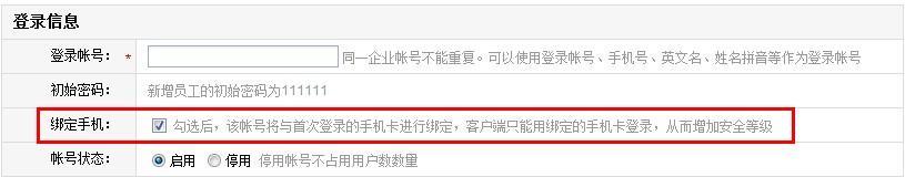创建员工账号时,勾选【批量绑定】功能后,该用户只能使用绑定的手机卡登陆;
