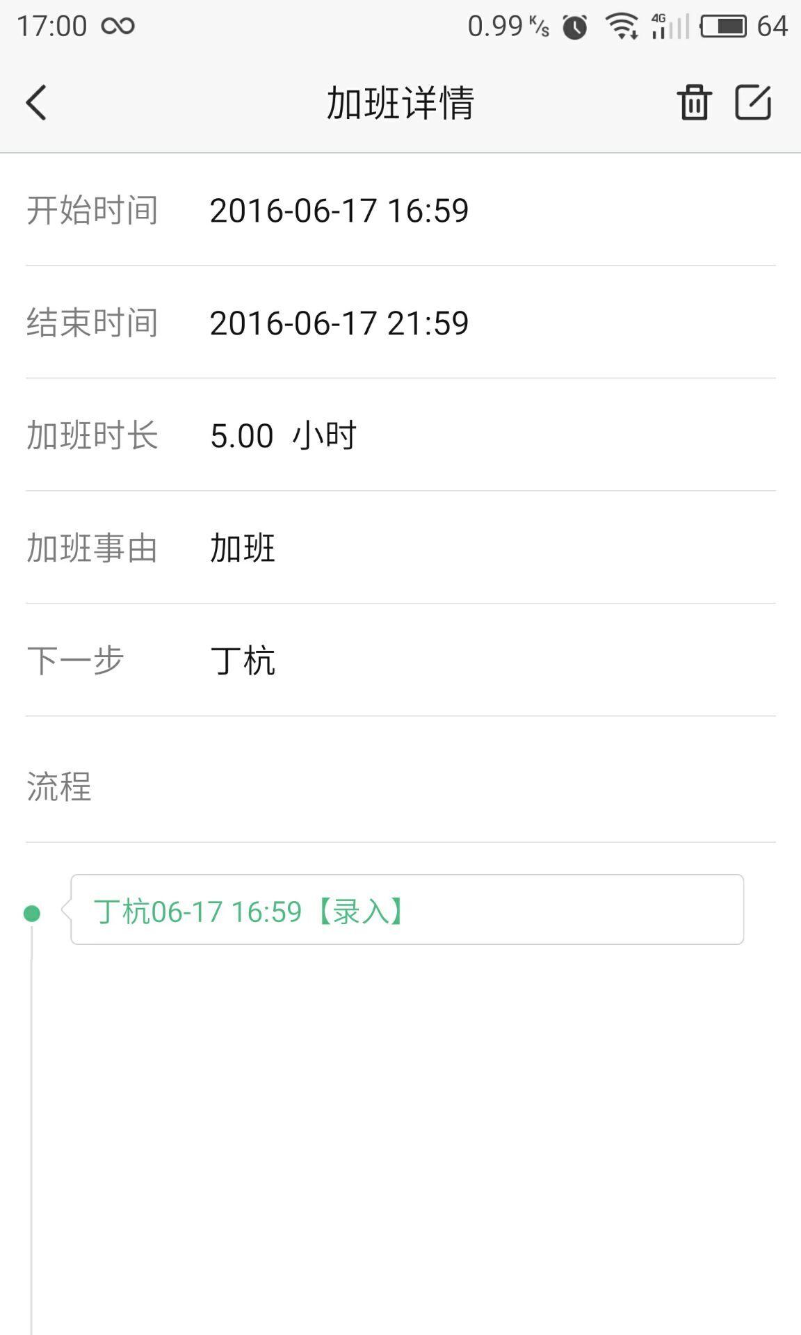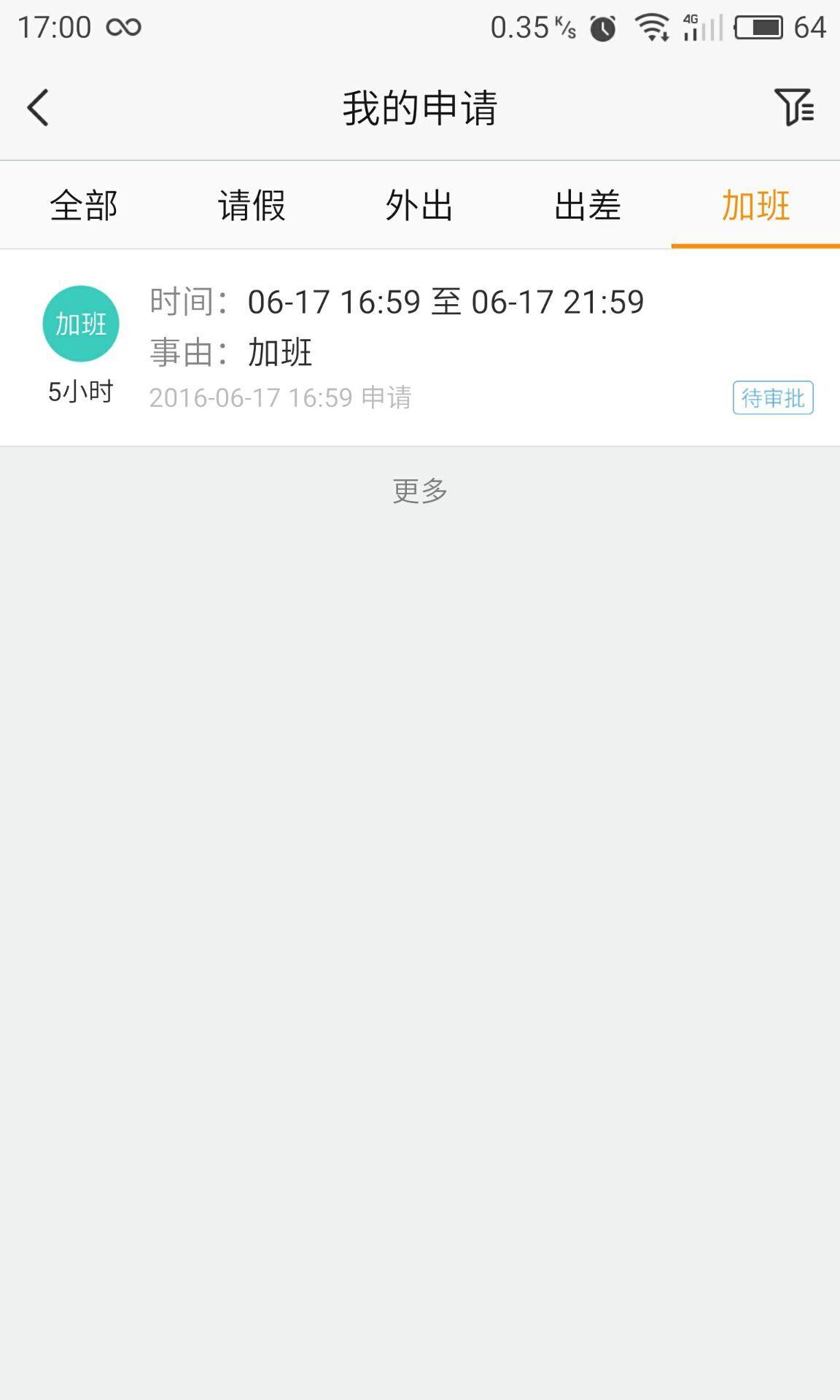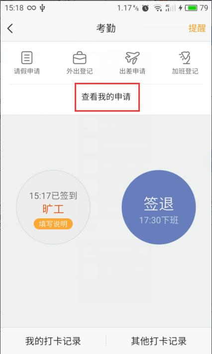 点击“查看我的申请”,查看加班申请记录,审批通过以前可以删除或者修改。