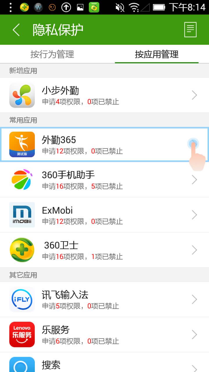 2.点击隐私保护——应用权限管理——找到外勤365,允许定位、允许打开网络