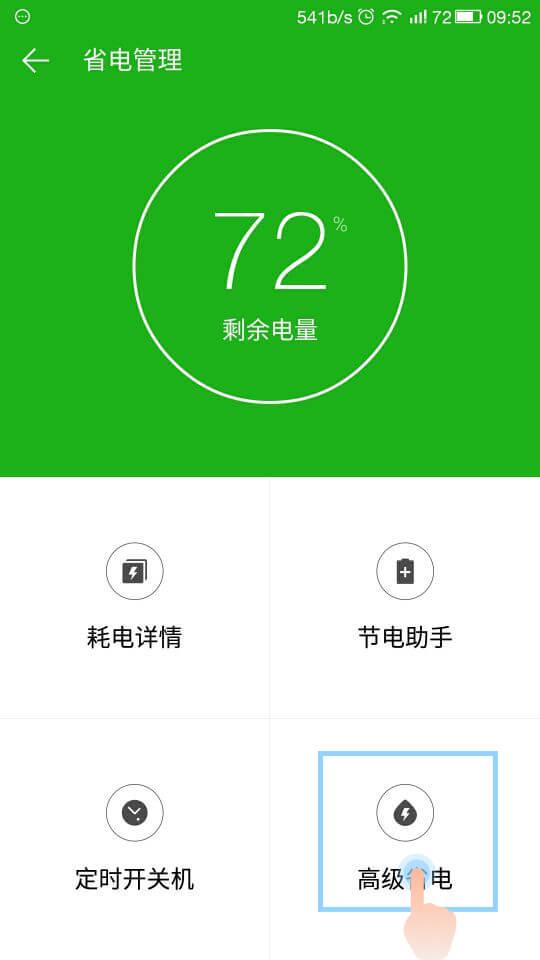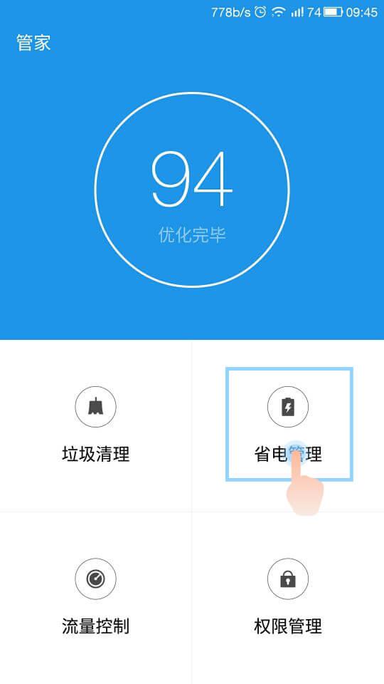 1.打开管家的省电管理,选择高级省电的应用智能省电