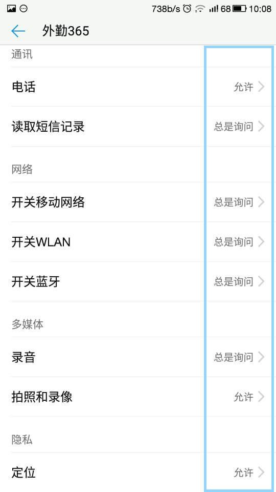 4.打开应用权限管理,在应用列表找到365打开,把网络权限打开