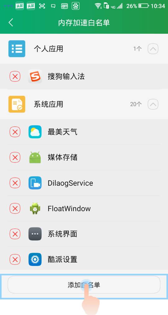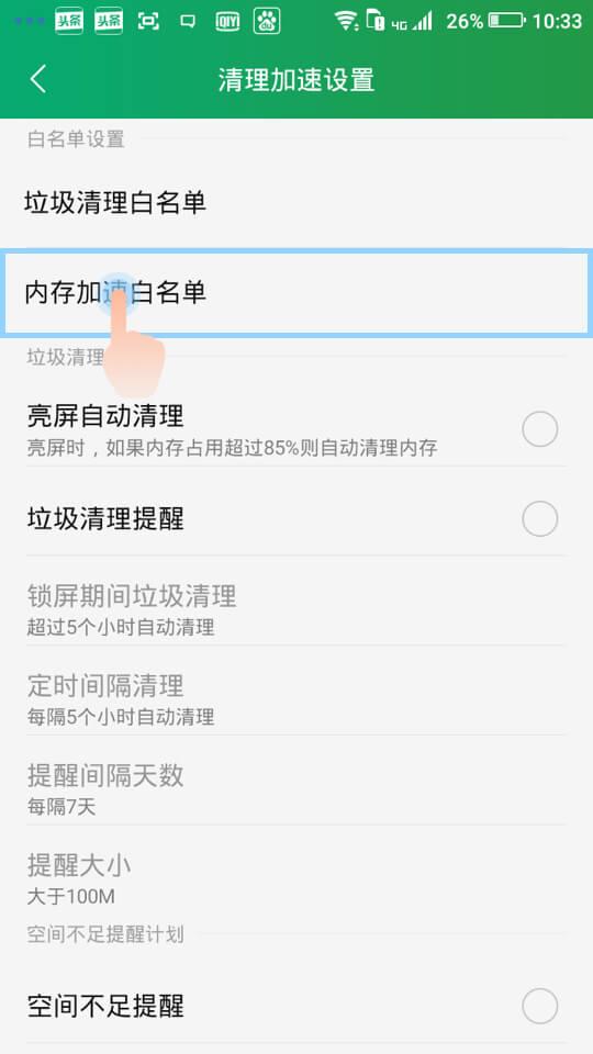 1.打开库管家页.点击清理加速——右上角的设置——内存加速白名单——下面添加白名单——找到365软件点加号加入白名单