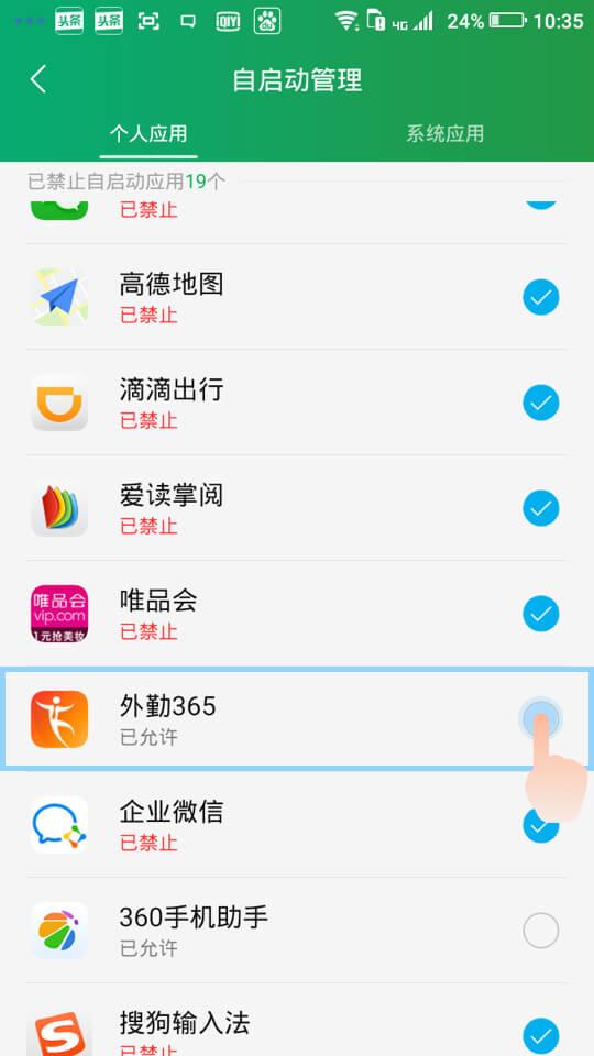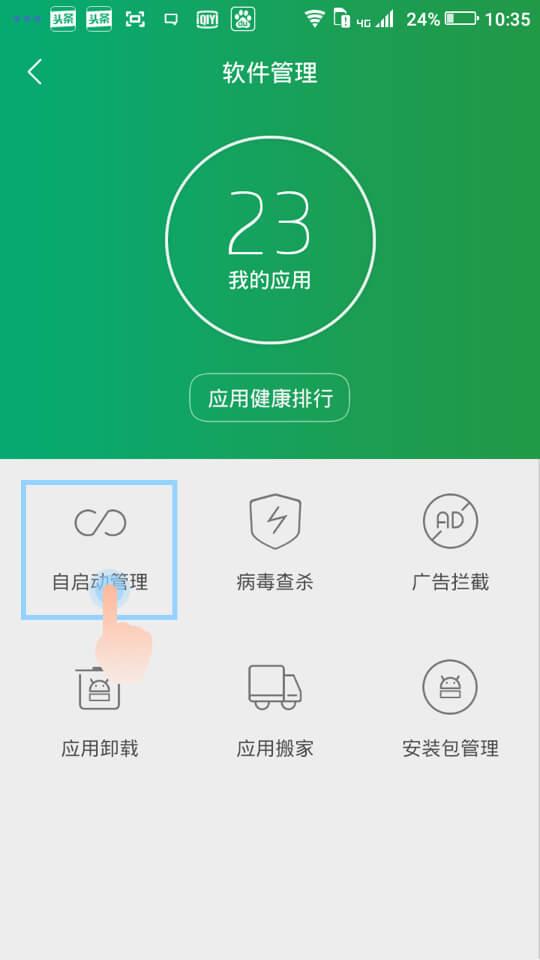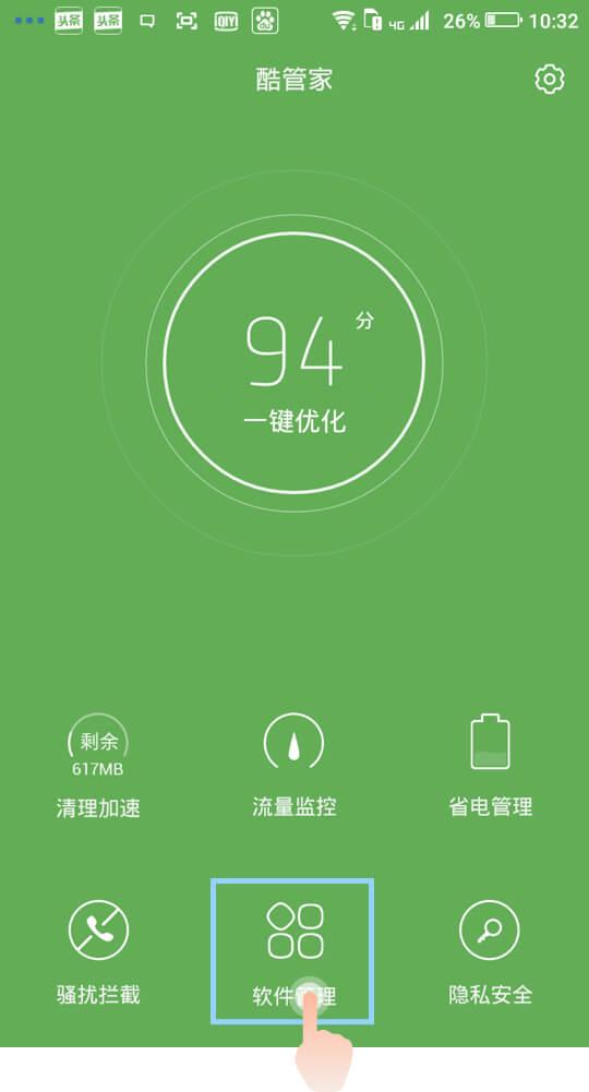 3.酷管家页面打开软件管理——点击自启动管理——找到365软件允许自启动