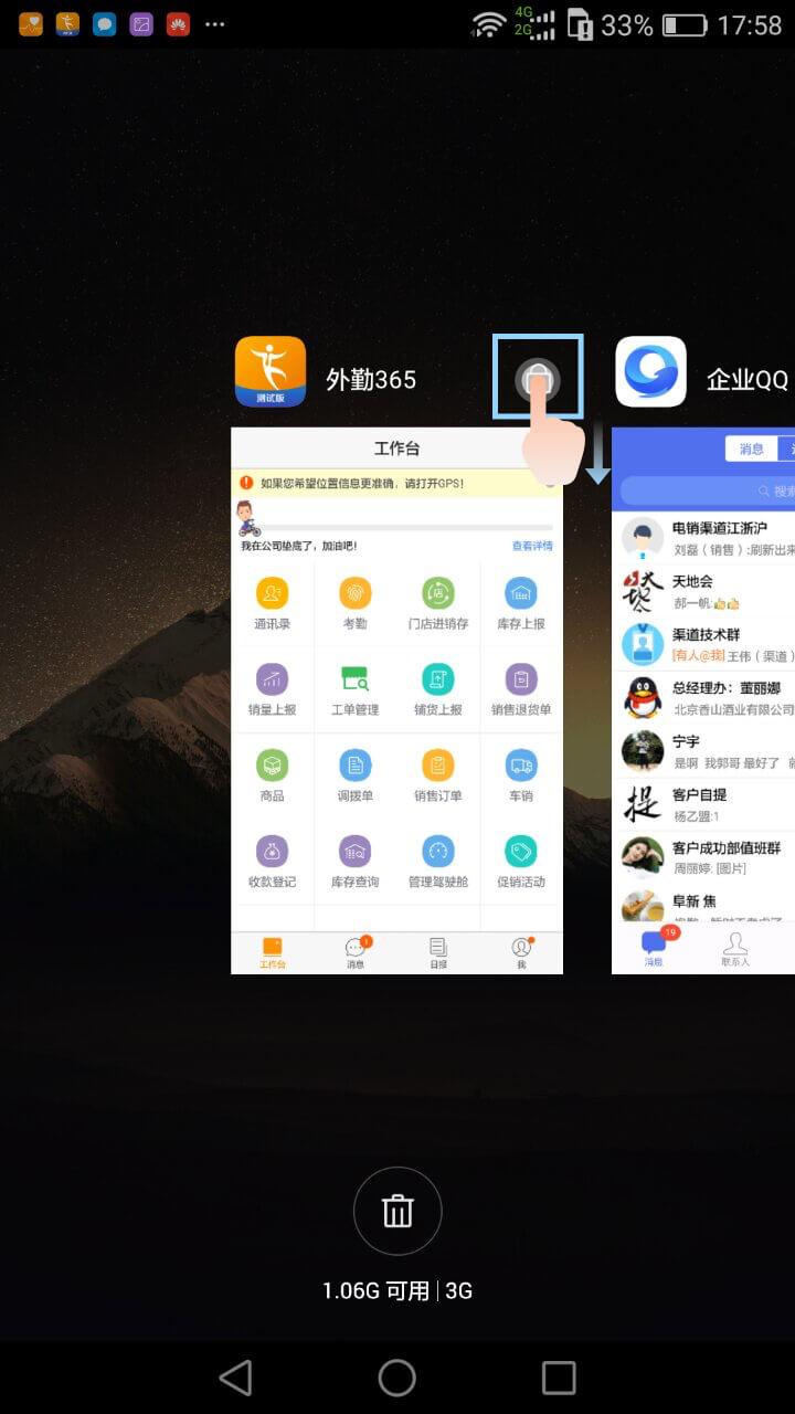 5.按虚拟方块键—找到在后台的应用—下滑锁定应用,右上角有锁的标志表示锁定成功,不能上滑把应用在后台删除