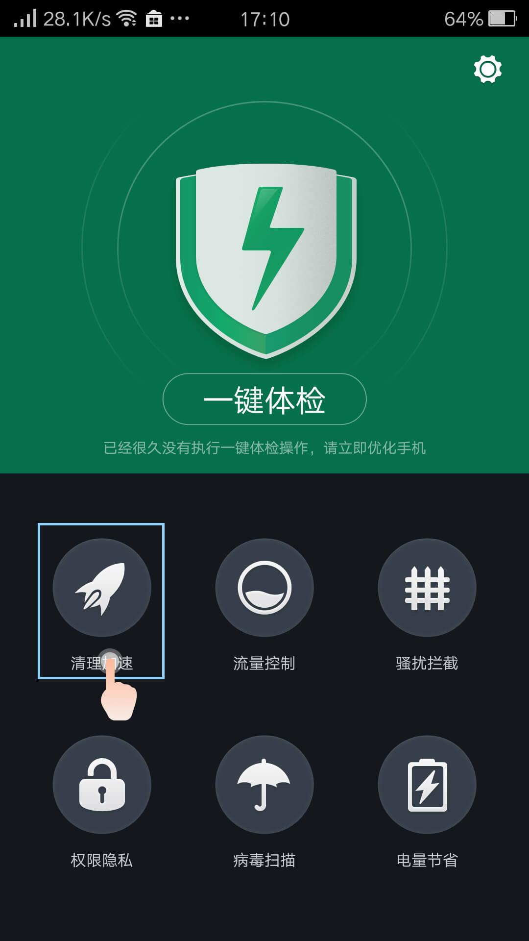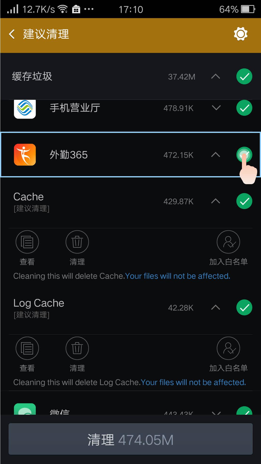 1.打开安全中心,选择清理加速(不要清理),找到缓存垃圾,把365加入白名单,如果没有,请先打开365并使用一会;