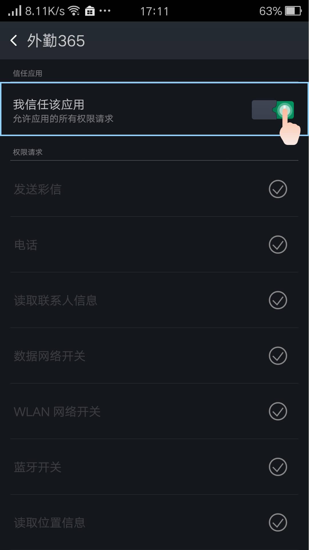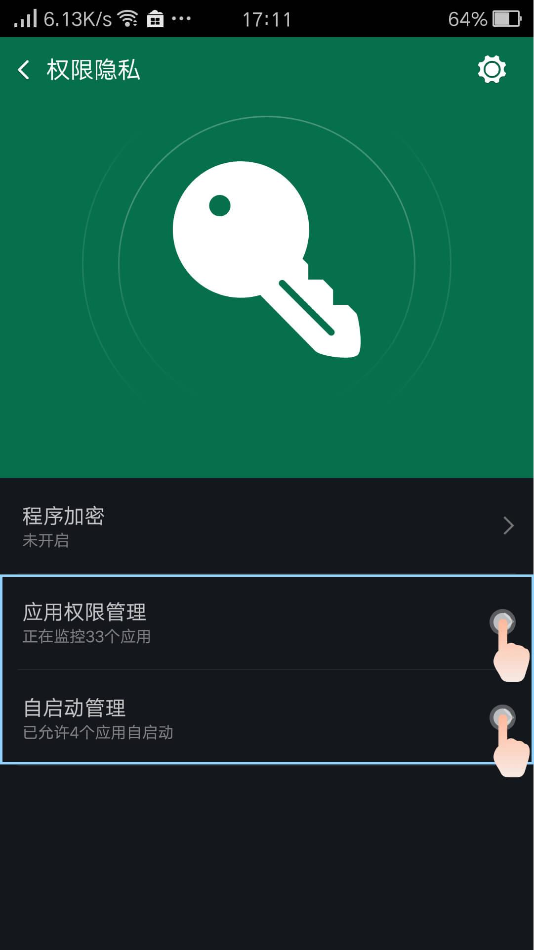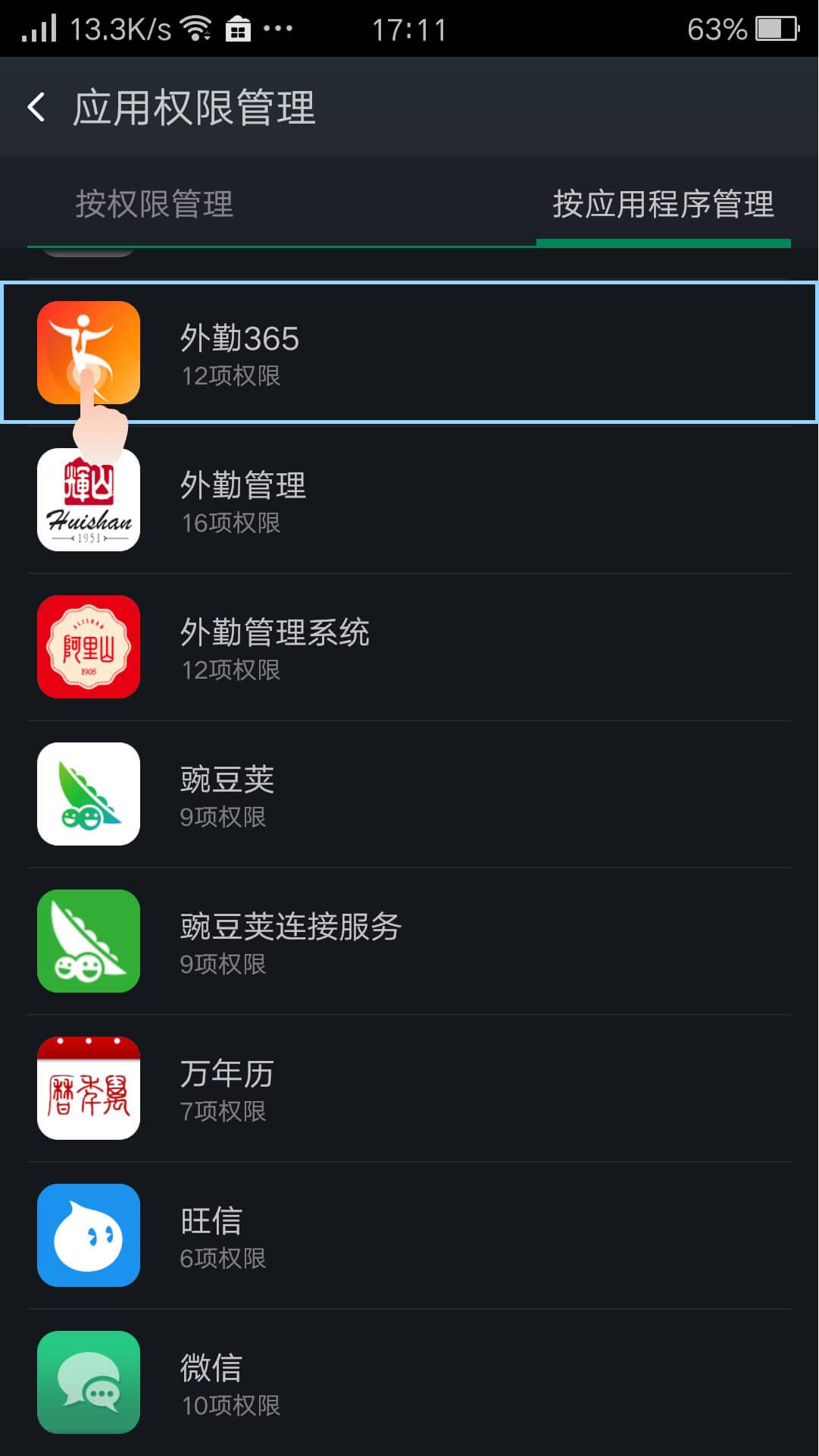 4.找到手机设置,在应用程序管理,给外勤365加上锁,如果没有找到,请先运行365并放到后台;把自动清理后台运行的应用关闭;