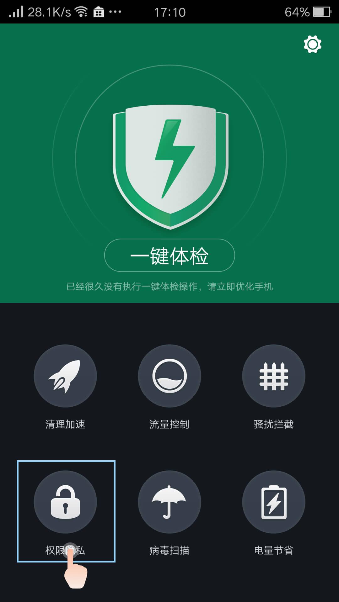 2.点击权限隐私,设置应用权限管理和自启动管理;