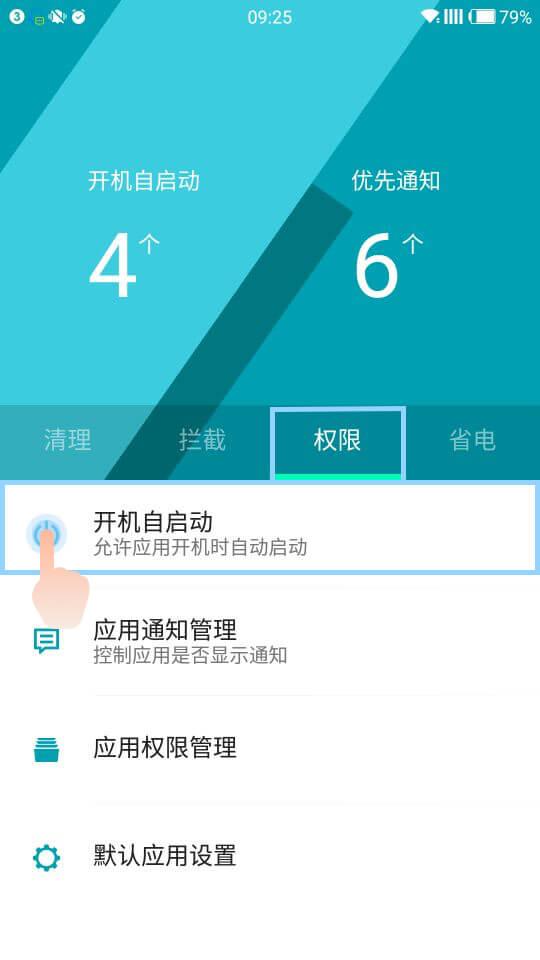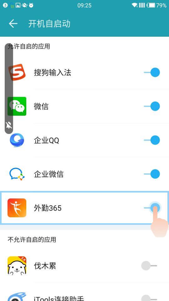1.打开管理中心,点击权限--开机自启动,允许外勤365自启动