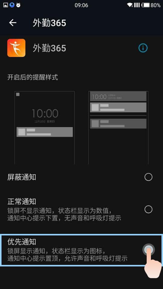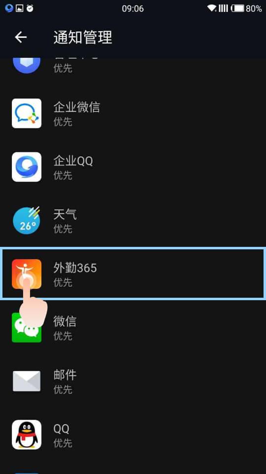 2.点击权限—应用通知管理,进去找到外勤365,选择正常通知或者优先通知;