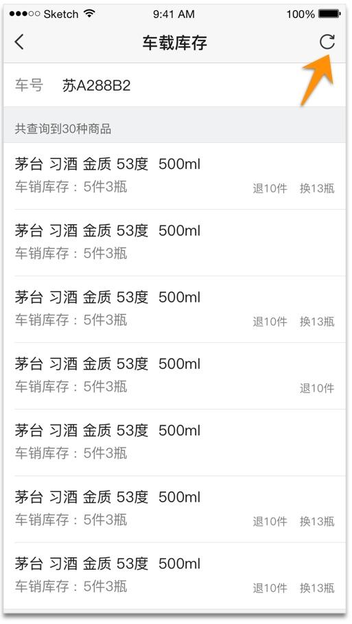 在提货或回库后,点击刷新图标,更新车载库存。