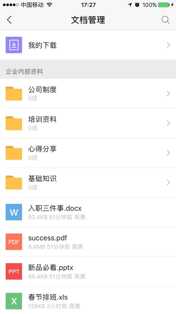 3. 员工只能查看自己可见范围内的文档,在手机端和WEB端均可进行下载查看。