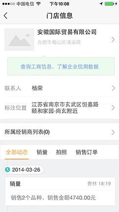 查看客户信息详情,并且可以查询客户工商信息,了解企业信用数据;在地图上标注客户位置;支持手机编辑客户信息、联系人信息、对客户位置重新定位。