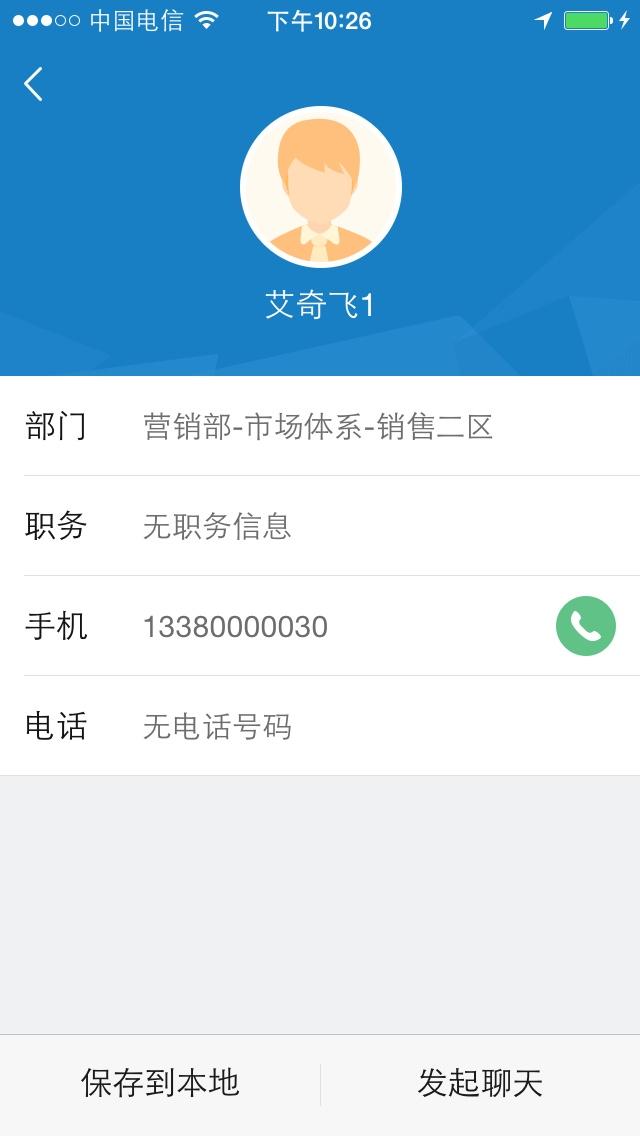 企业所有员工打开外勤365手机端通讯录即可查找所有人员信息,并可直接拨打电话、发短信。
