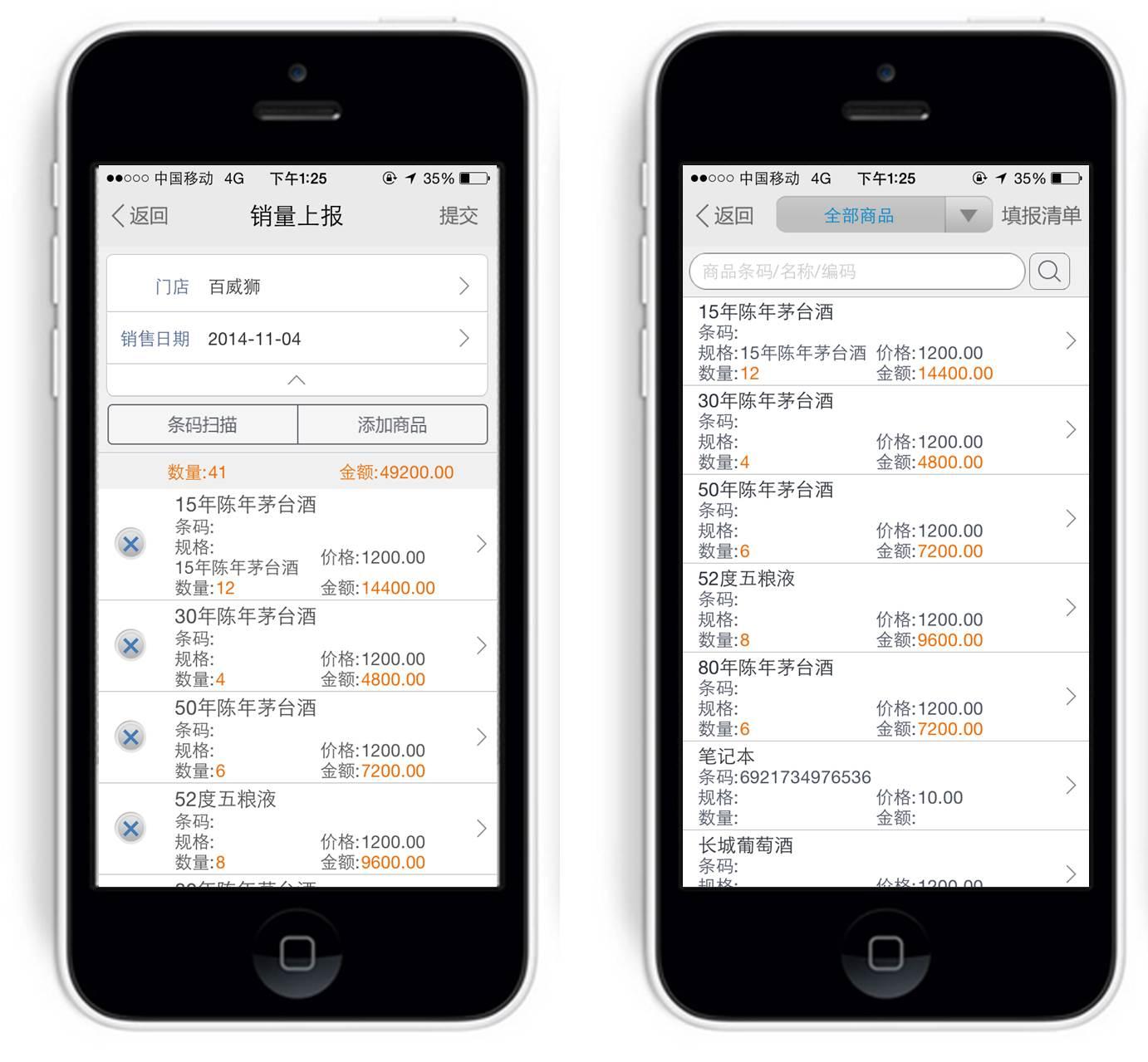 外销人员通过外勤365手机端,可以对不同客户的商品进行批量销售填报,提交总部。