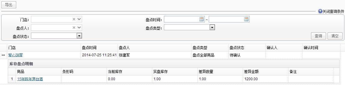 库存盘点无误后,点击“提交”,公司总部管理人员可以在后台实时查看到门店提交的库存盘点数据。