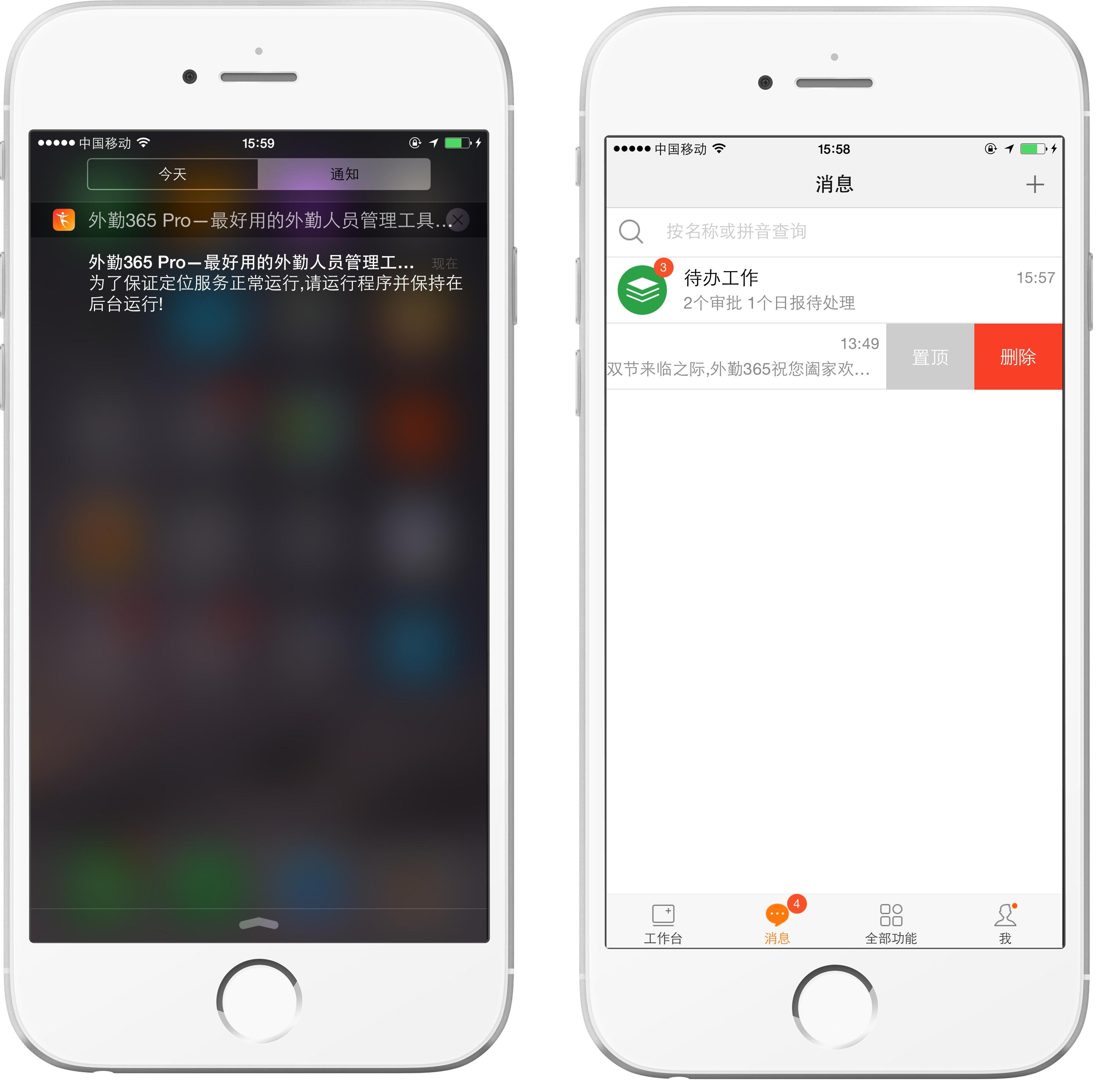 外勤365提供消息推送功能,通过在通知栏主题式提醒,企业所有人员点击提醒即可激活消息信息进入消息列表,查看详细内容。