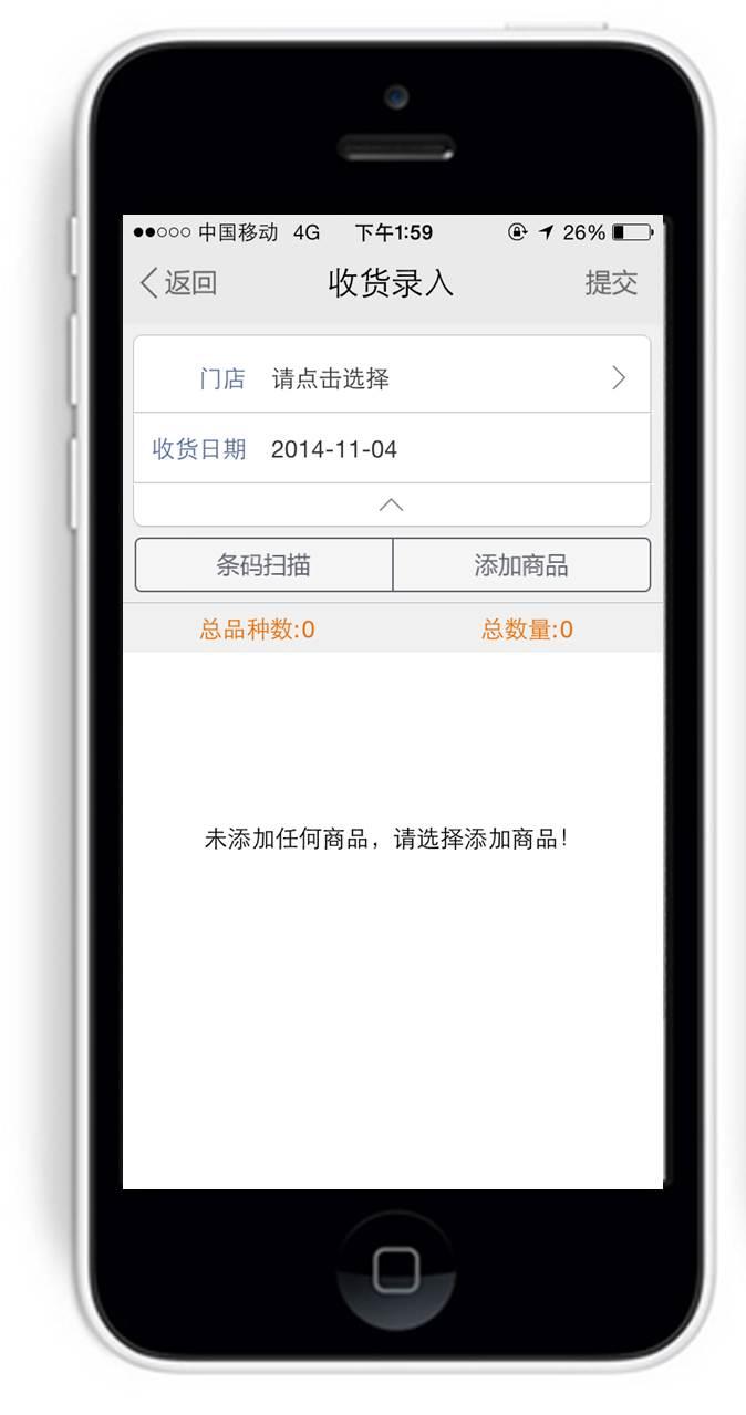 外勤365手机端选择“门店收货”,可以对门店接收到的公司到货信息进行录入。
