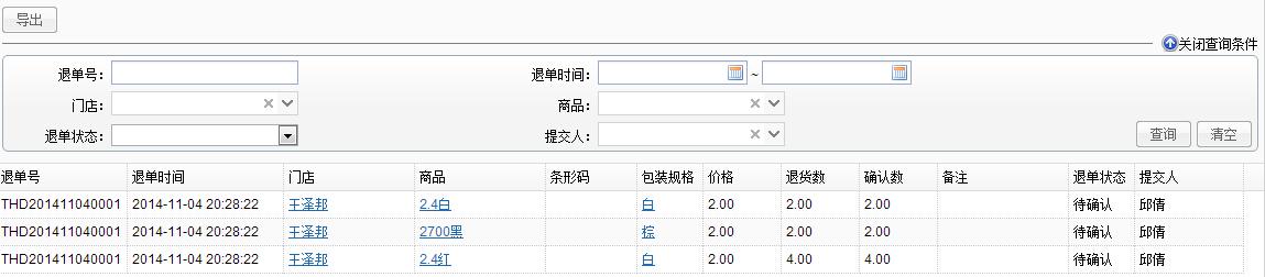 公司总部管理人员即可在后台查看到门店的退货明细。