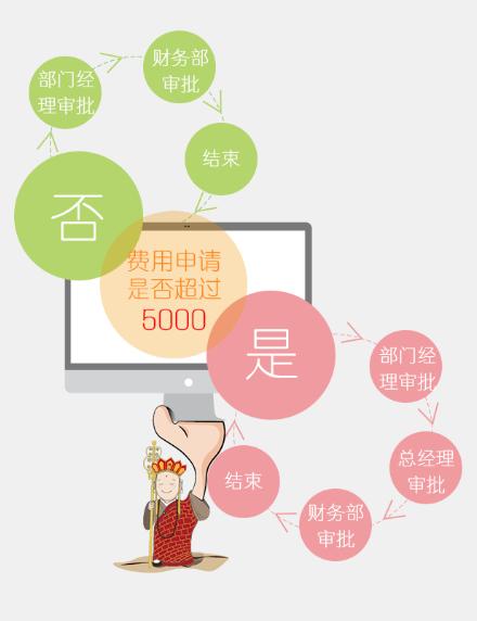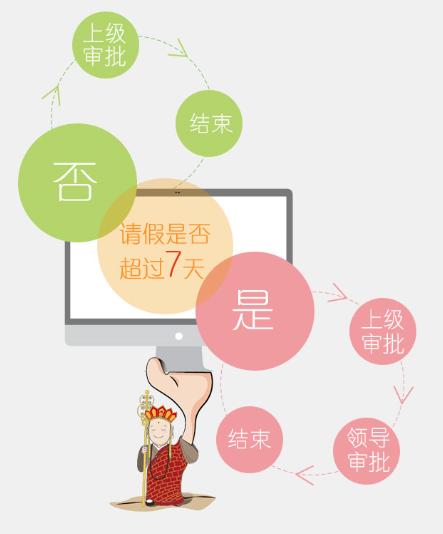 多级流程设置,即企业可以根据自己的业务需求,对一些日常考勤如外出、出差、请假、物品领用、工作请示、会议报告、开立发票以及费用申请等单级流程按条件设置多级流程,有效规范企业的业务流程。