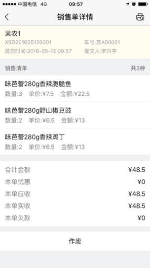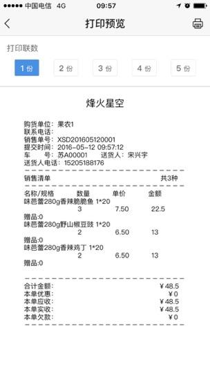 业务员使用手机执行车销业务,现场蓝牙机打印机打印销售单据让客户签字,杜绝业务员拆单以及并单等违规操作。