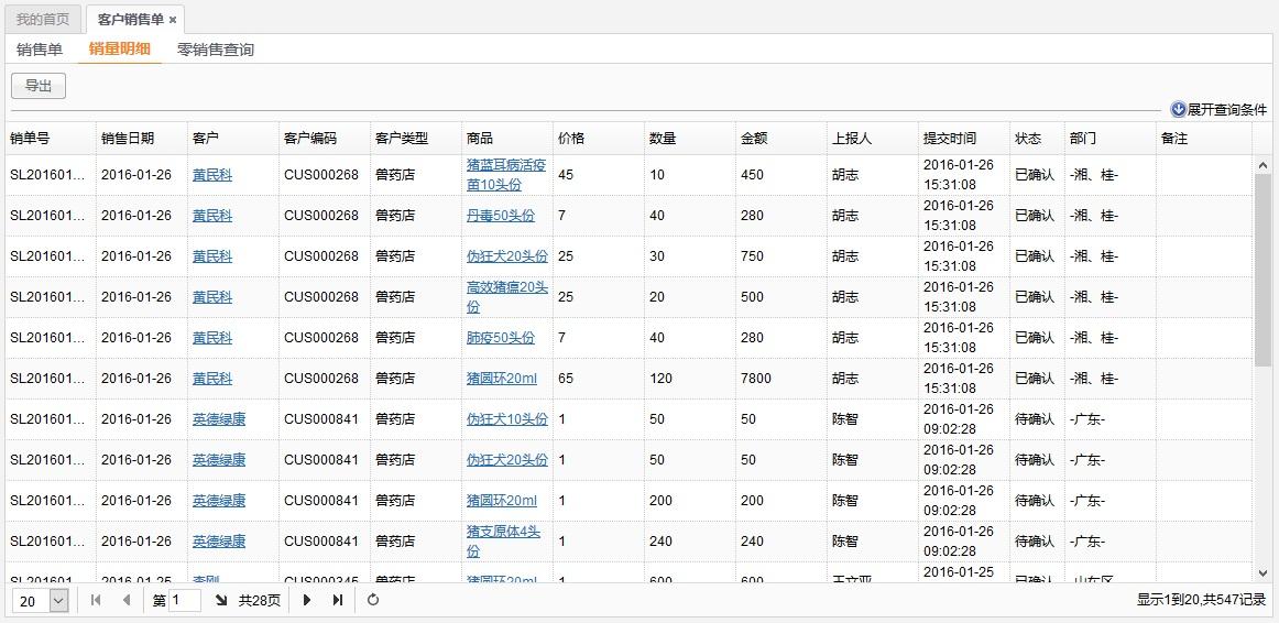 2、管理者使用外勤365电脑端查看业务员上报的终端销量数据