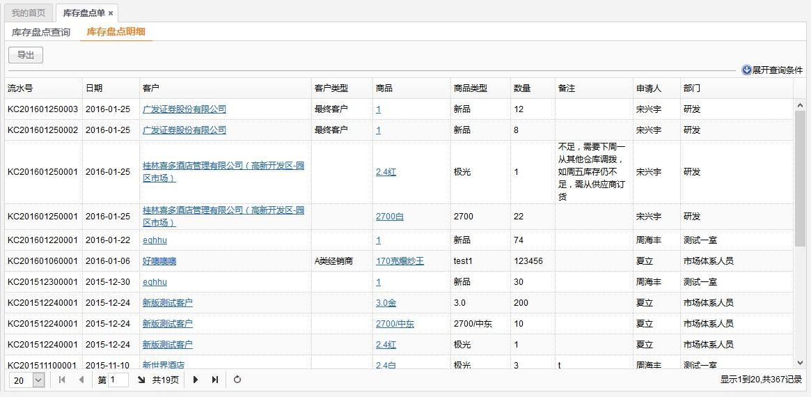 2、管理者使用外勤365电脑端查看业务员上报的终端库存数据