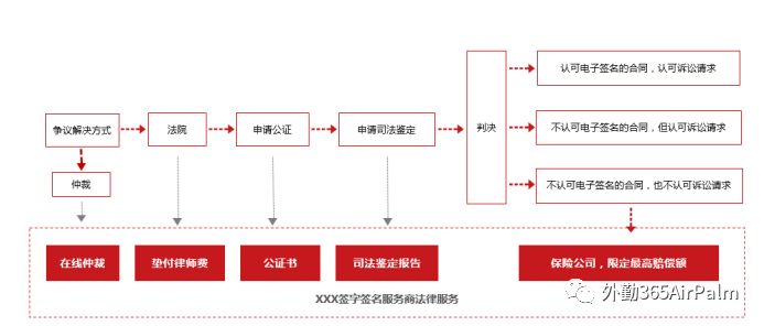 如遇合同纠纷,电子签名服务商可提供出证或法律服务,详情见下图: