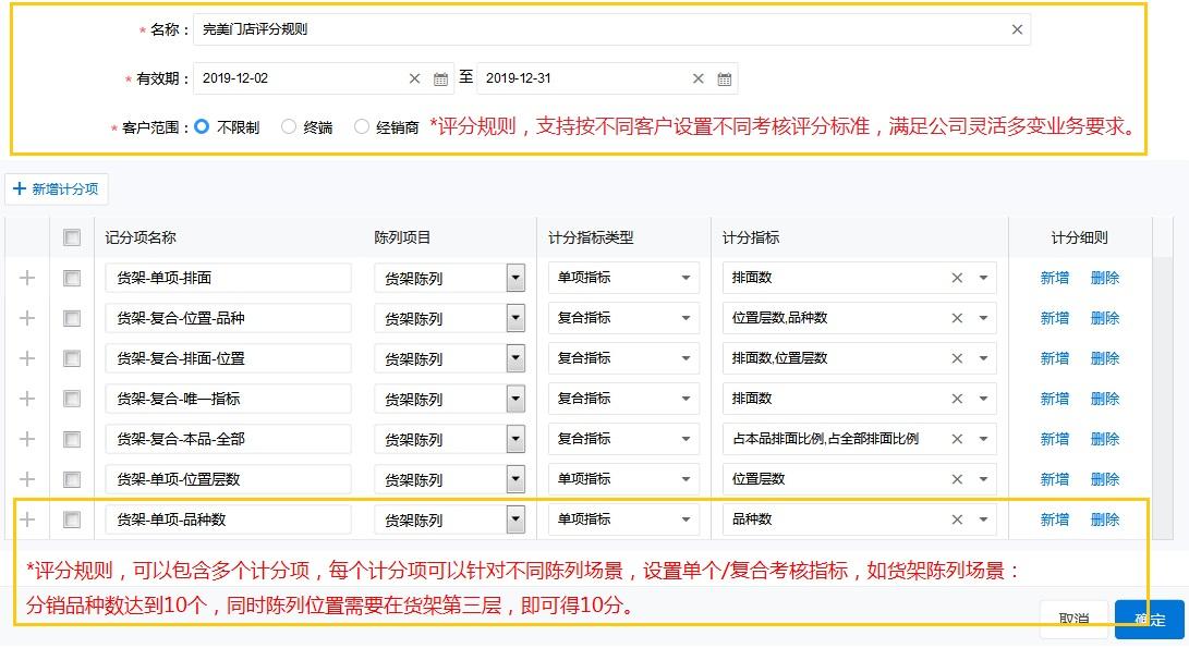 不同企业,对于终端门店存在不同的考核指标及要求,比如针对大小店有不同的分销数考核要求,那么如何满足企业灵活多变的场景考核要求呢?