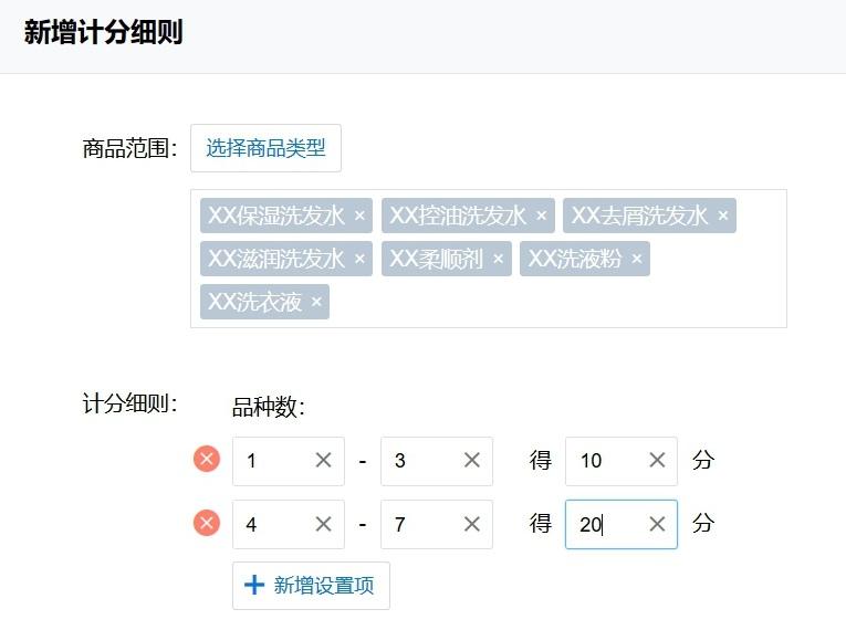 ●针对小店类型考核,支持到具体品类/品牌设置分销数考核指标