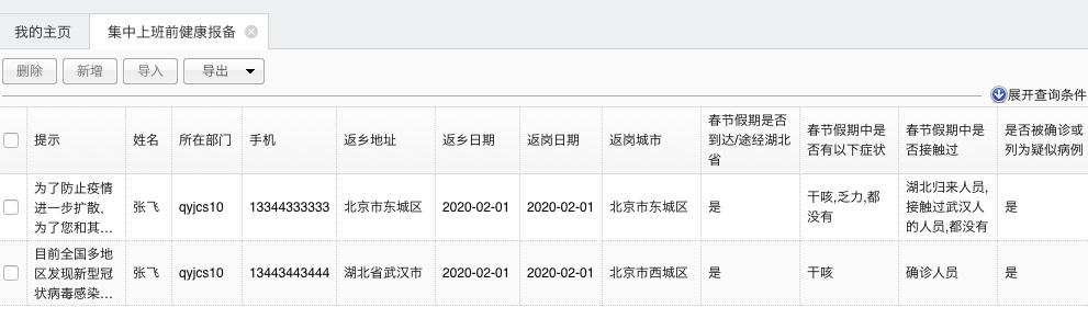 大部分的企业几天后就要正常开工了,员工从各地集中返工,企业需要及时、高效、准确的掌握员工健康情况,保护好自己的员工,打胜这场疫情防控战。