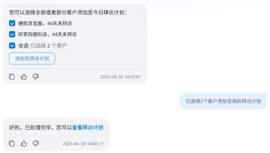 现在,老王打开手机,AI秒级安排好“拜访计划”: