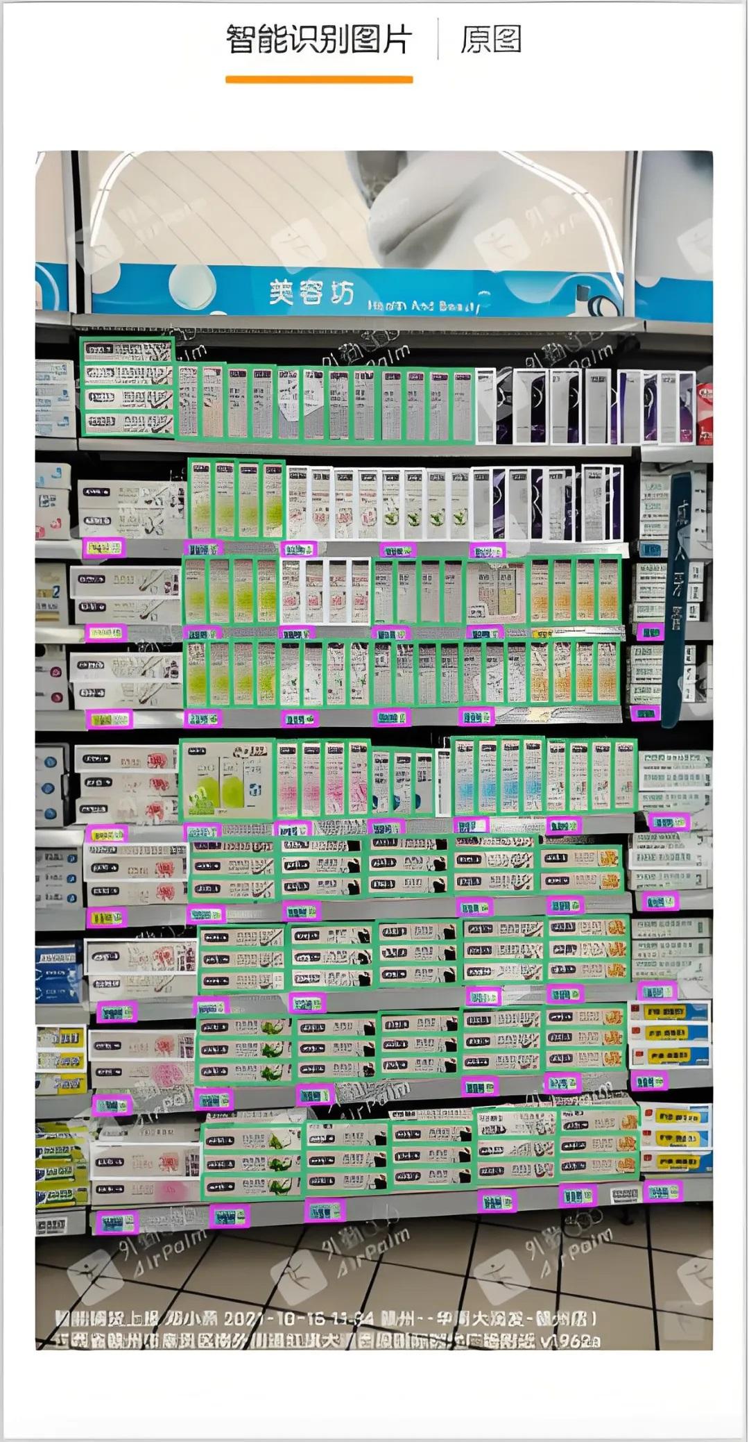 01 货架识别 3秒拼完10米货架,排面数自动算 盘点货架,业务员得蹲在地上一张张拍,回去后还得手动拼接、数排面,1家店至少耗20分钟。 勤策AI货架识别自动把照片接成完整货架图,本品/竞品的排面数、占比、层数甚至摆放顺序直接标清。 当场就能和店主沟通补货,不用等晚上复盘。 特殊陈列场景识别也不在话下,无论是收银架、落地架、地堆(异形)、斜口笼、堆箱、挂架、挂网等都能轻松搞定。 02 价签识别 破价1秒预警,比业务员眼睛还尖