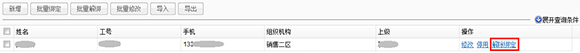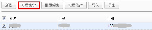 3、对于已经存在且未绑定的账号,在员工列表页面,勾选该账号,点击【批量绑定】;
