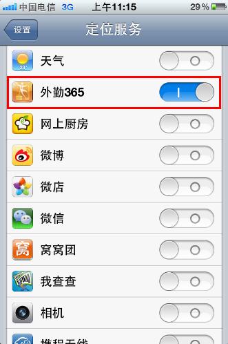 通过以上设置,我们的外勤365软件就可以通过iPhone手机的定位服务获取位置信息,完成业务数据的上报。