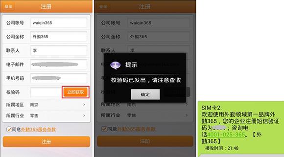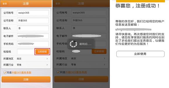 请及时查收我们的短信和邮件,并妥善保管。至此,手机客户端注册外勤365就完成了。