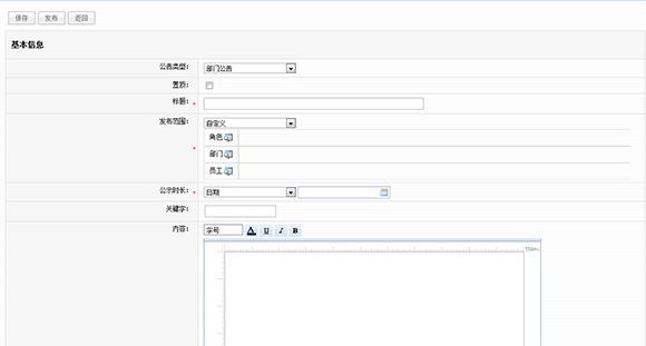 我们需要根据公告的作用,选择发布范围,可根据不同的角色、部门或者员工来发布公告;