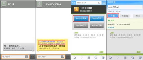 收到短信后,通过手机浏览器打开下载地址,下载客户端,再进行安装;