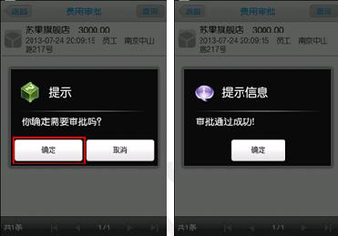业务员的领导在手机端,可以通过【费用审批】功能,对业务员提交的费用申请进行审核。选中需要审批的记录,选择“审批通过”,
