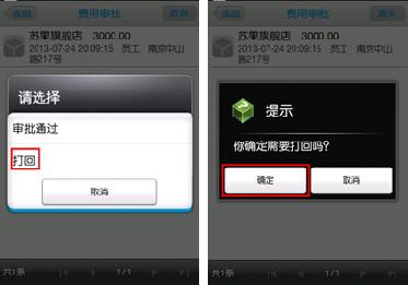 领导也可打回业务员的费用申请,选中需要审批的记录,选择“打回”,按照提示确定打回。