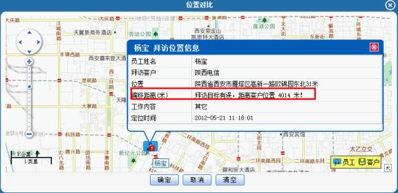 这其中关键点在于,业务员在填写拜访记录时,会自动采集业务员的地理位置信息(GPS信息),并且上报。这样,管理者在电脑上就可以看到业务员在填写拜访记录的时候到底是不是在不在客户那里。看下面图,业务员实际拜访时的位置和客户真实位置之间的距离差一目了然,如果差距超过了500米,我们基本上可以认定这次拜访行为是假的了。