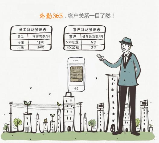 3、业务代表通过“外勤365”登记每日做拜访客户的情况,这样,企业的管理者可以看到每个业务代表每个月拜访了多少客户,每个客户被拜访了多少次。哪些客户长期未被拜访过。不用担心业务员作假填写虚假的客户拜访记录,因为外勤365会记录业务员每次拜访客户时的地理位置信息,如果业务员登记时并不在客户的实际位置处,外勤365会在系统中向企业管理者发出警告。