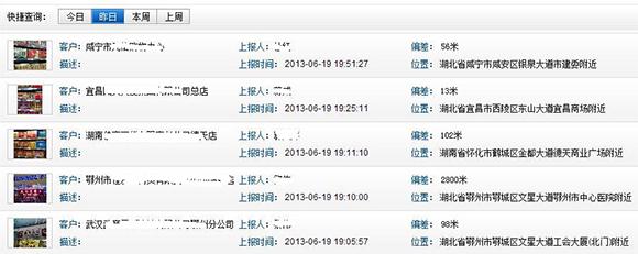 登陆www.waiqin365.com后台查看员工们拍的照片时,可以清楚的看到拍照的位置信息,还可以看出,这个位置和客户实际位置有多大偏差,一般来说,偏差在200米以内,都是真实的数据