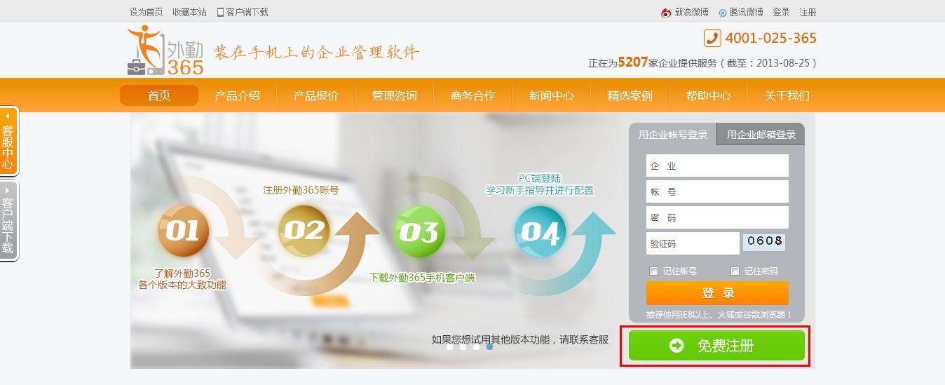 登录外勤365官网,使用我们注册的邮箱进行登录;