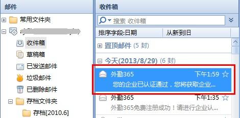 查看我们的邮箱,会再次收到外勤365系统发送的邮件;