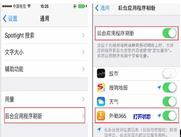 苹果手机“设置”,依次点开“通用”和“后台应用程序刷新”,找到外勤365软件,