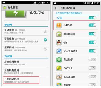 打开“开机启动应用”找到“外勤365”,让软件处于打开状态。