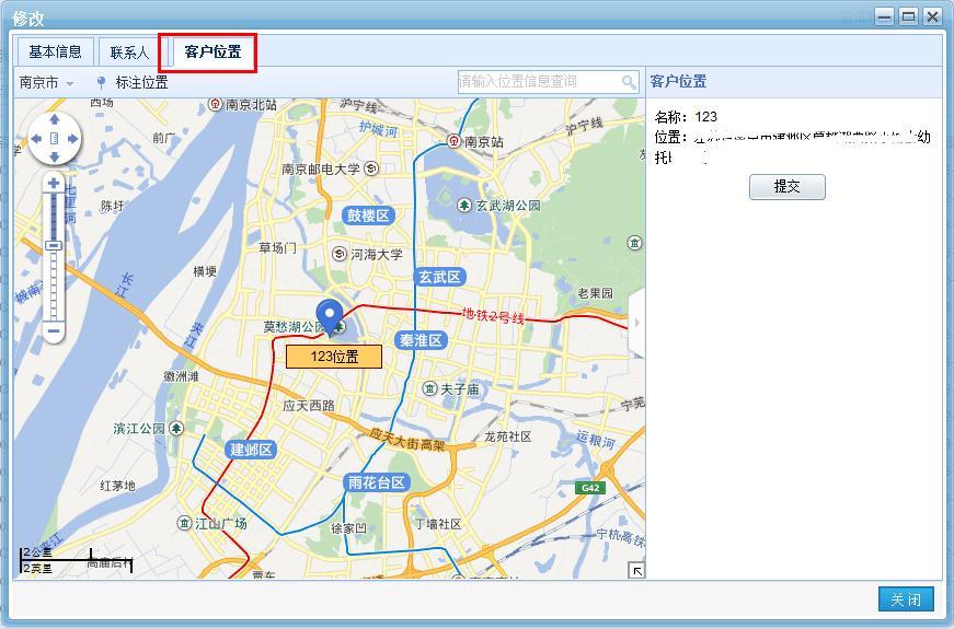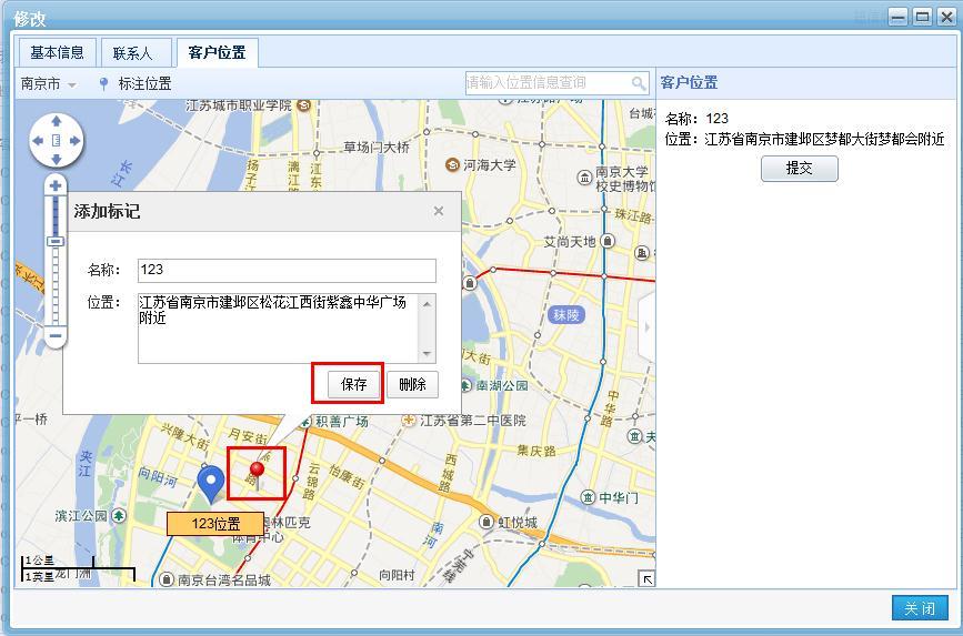 点击上面的快捷菜单栏选择“客户位置”就可以标注客户位置信息了。