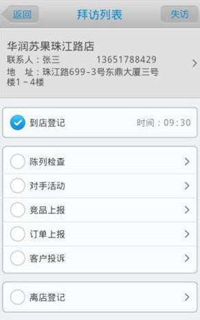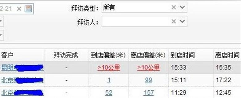 业务员在进店时点击到店登记,离开时点击离店登记,这样可以准确的统计出,在每一个店里实际的停留时间,当然,也会记录下位置信息,您一眼就能看出拜访行为是否是真实发生的。