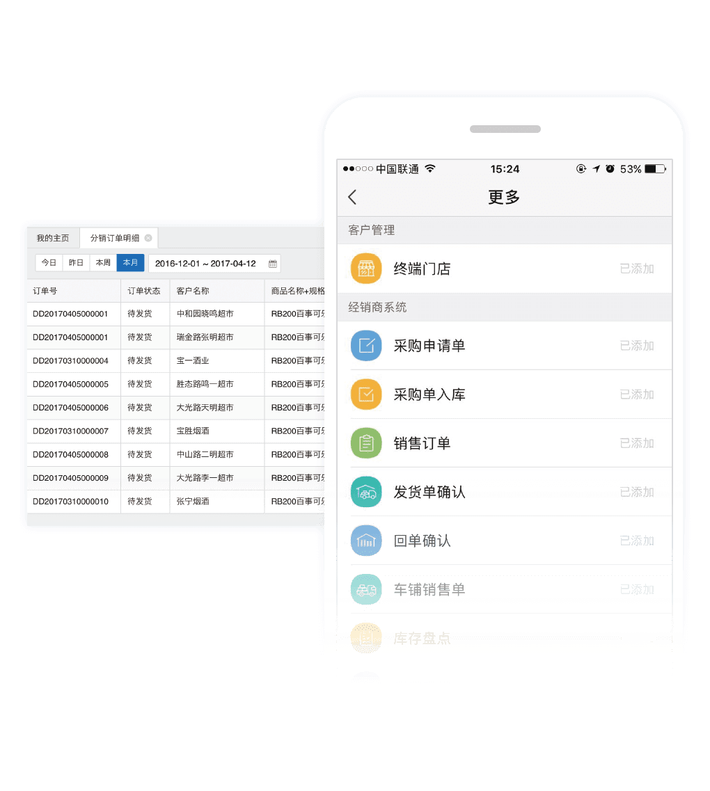 通过一个平台紧密连接经销商、分销商和终端,构建品牌商和经销商/终端的一体化订货体系,管理整个分销环节的信息流、资金流和物流。
